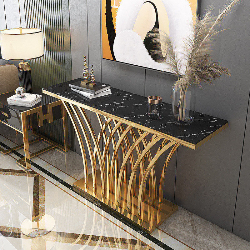 Customize your own luxury marble entrance platform console desk, stainless steel entrance platform table, or sideboard table with SEDIA. Our entrance console table is crafted with a 45cm width and glossy finish, and features a unique rectangular shape. Assembly is required, and delivery will take up to 30 days.